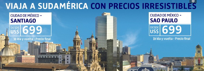 Sudamerica desde Mexico a Santiago a 699 dolares hasta el 6 de Noviembre